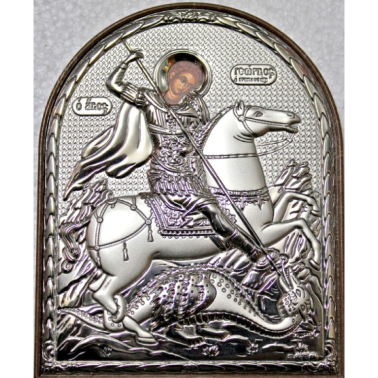 Άγιος Γεώργιος – Επάργυρη εικόνα επιτραπέζια διμεταλλική