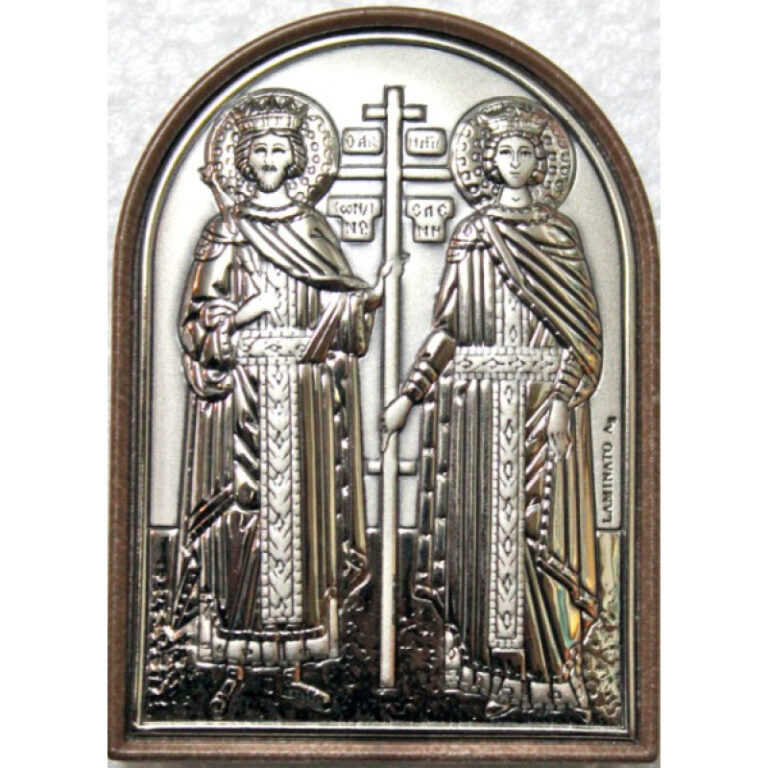 Άγιοι Κωνσταντίνος & Ελένη – Επάργυρη εικόνα επιτραπέζια διμεταλλική