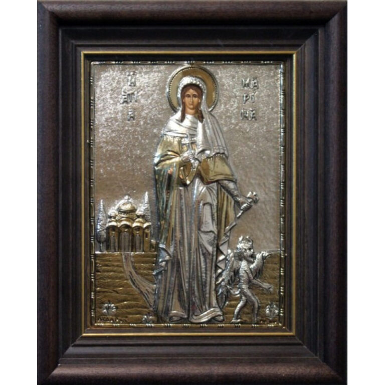 Αγία Μαρίνα – Επάργυρη εικόνα με κορνίζα και τζάμι