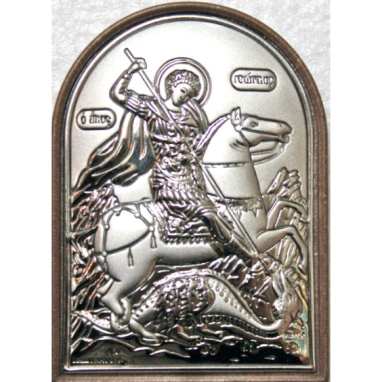 95,00 € – 120,00 €Price range: 95,00 € through 120,00 €Χειροποίητη επάργυρη εικόνα σε κορνίζα με τζάμι, με τον Άγιο Δημήτριο