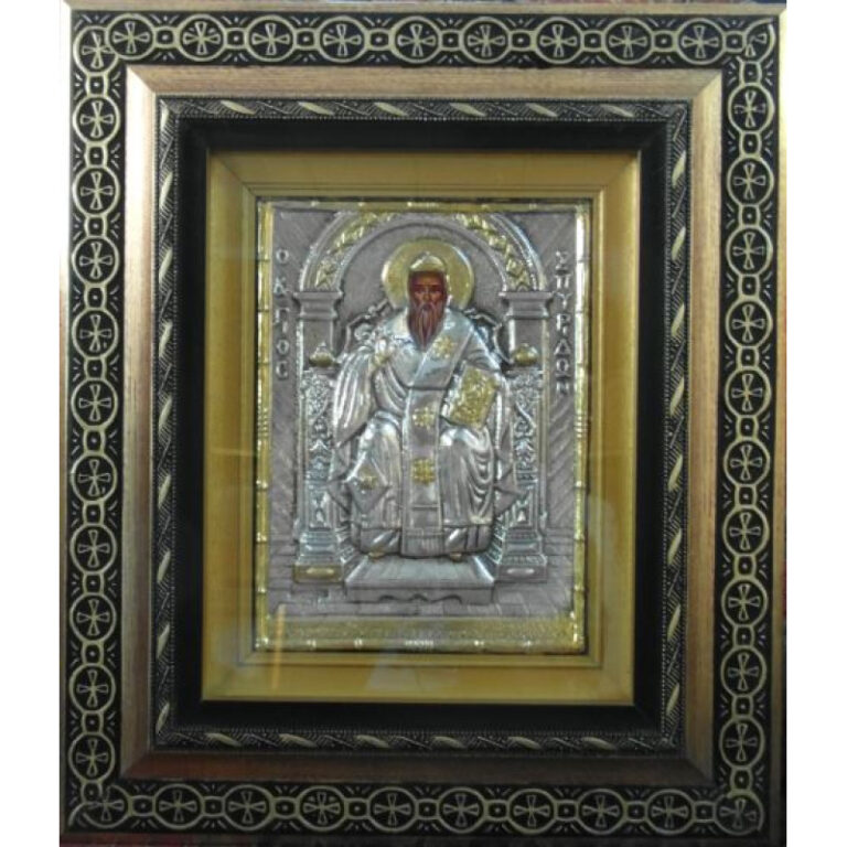 Άγιος Σπυρίδων – Επάργυρη εικόνα κορνίζα