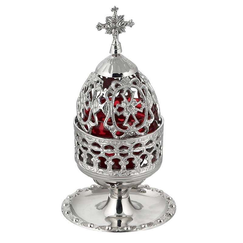 Επιτραπέζιο επινικελωμένο σκαλιστό οικιακό καντήλι με πιατάκι