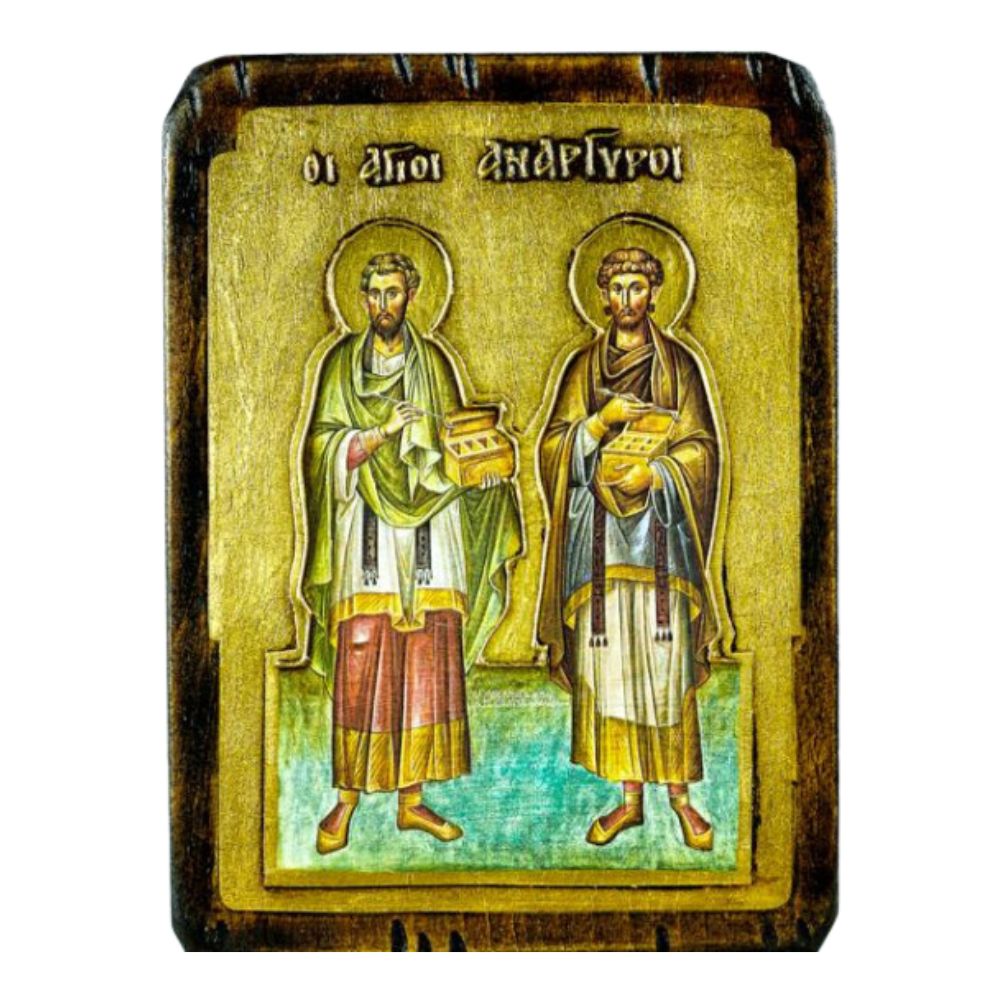 Άγιοι Ανάργυροι – Εικόνα Ξύλινη Χρυσοτυπία