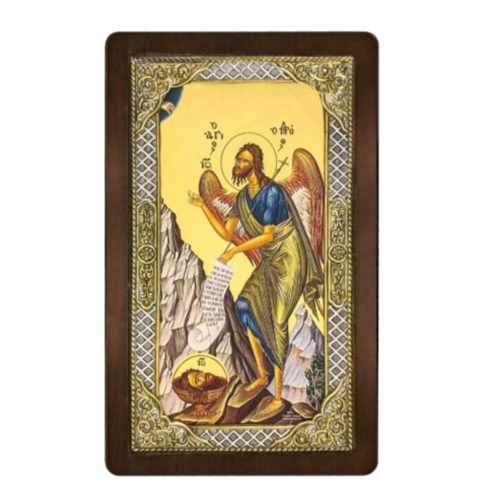 Άγιος Ιωάννης ο Πρόδρομος – Εικόνα με Σκαλιστό Πλαίσιο από καθαρό Ασήμι 925 και Επιχρυσώματα 24 Καρατίων