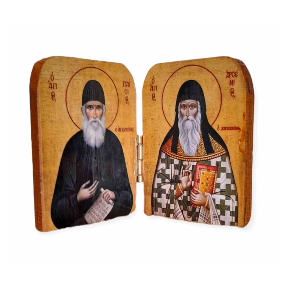 Δίπτυχη ξύλινη εικόνα με τον Άγιο Παΐσιο και τον Άγιο Αρσένιο τον Καππαδόκη