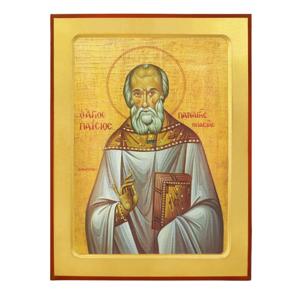 Ξύλινη εικόνα σκαφτή με πλαίσιο με τον Άγιο Παναγή Μπασιά (Παΐσιος)