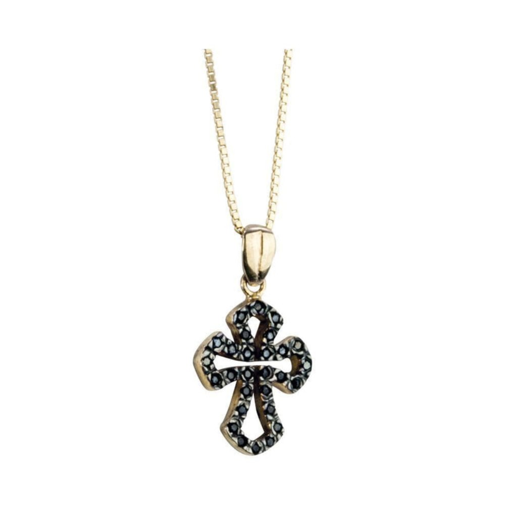 Ασημένιος Σταυρός 925 Επίχρυσος με Μαύρο Σμάλτο