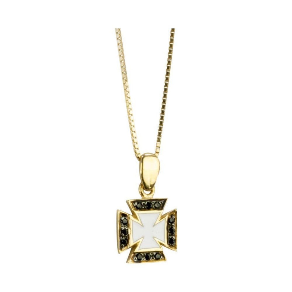 Ασημένιος Σταυρός 925 Επίχρυσος με Μαύρο Ζιργκόν / Λευκό Σμάλτο
