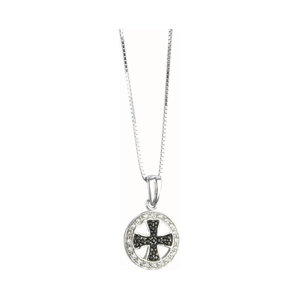 Ασημένιος σταυρός 925 με λευκό/μαύρο ζιργκόν και ασημί αλυσίδα 925