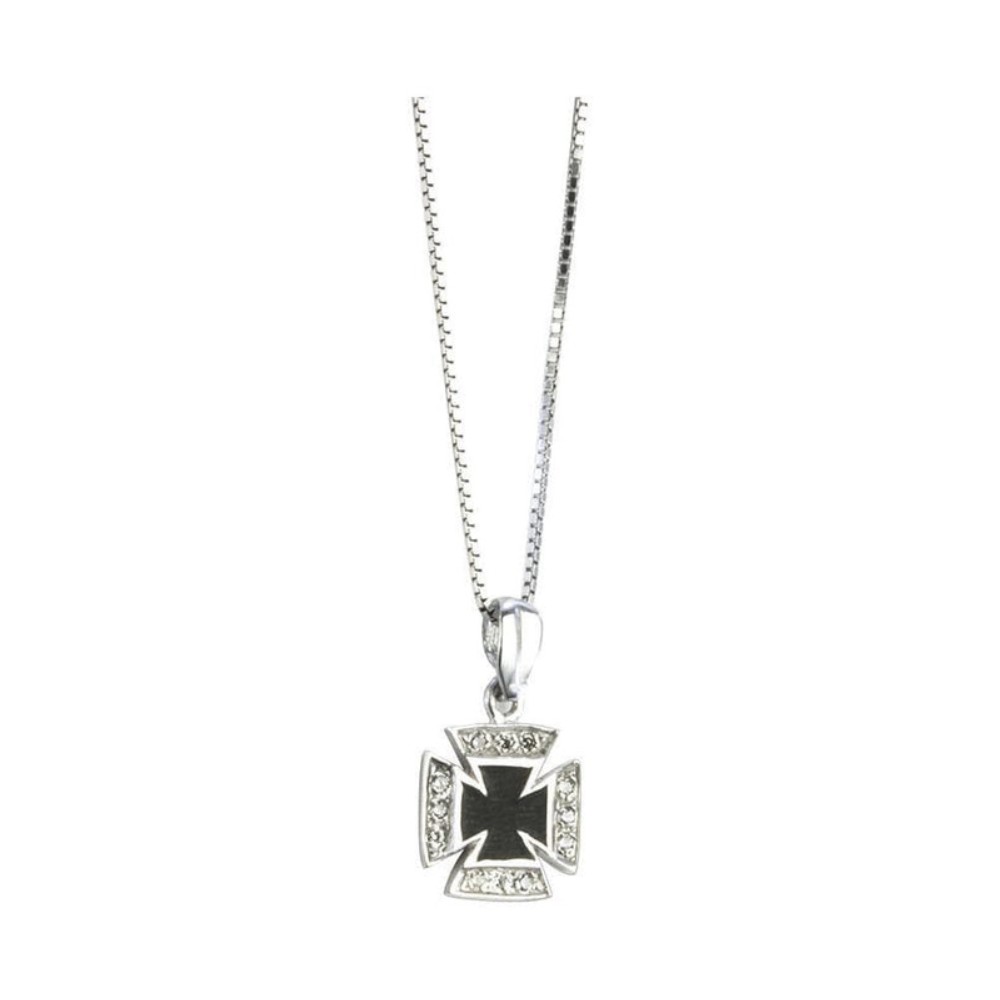 Ασημένιος σταυρός 925 με μαύρο σμάλτο / λευκό ζιργκόν και ασήμι 925 επιχρυσωμένη αλυσίδα
