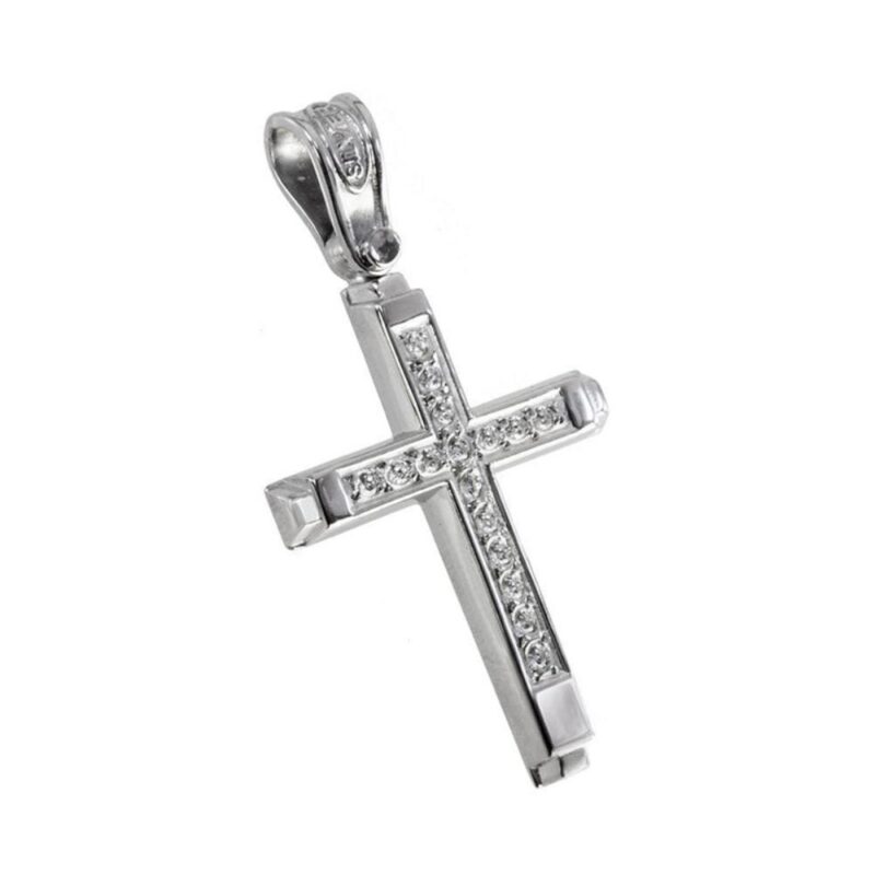 Ασημένιος Σταυρός 925 Επιχρυσωμένος με Μαύρο Σμάλτο & Λευκό Ζιργκόν