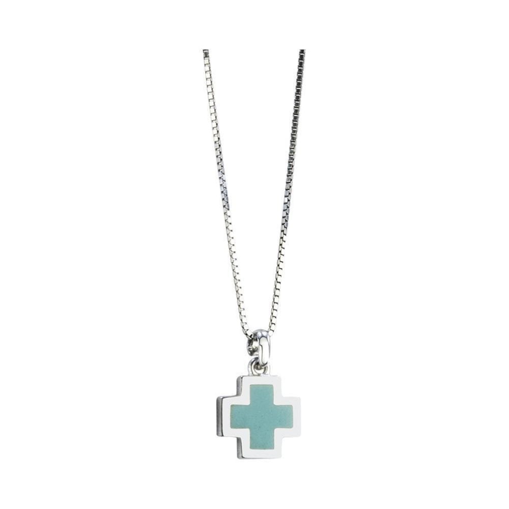 Σταυρός λαιμού από ασήμι 925 και σμάλτο σε 3 αποχρώσεις και αλυσίδα από ασήμι 925
