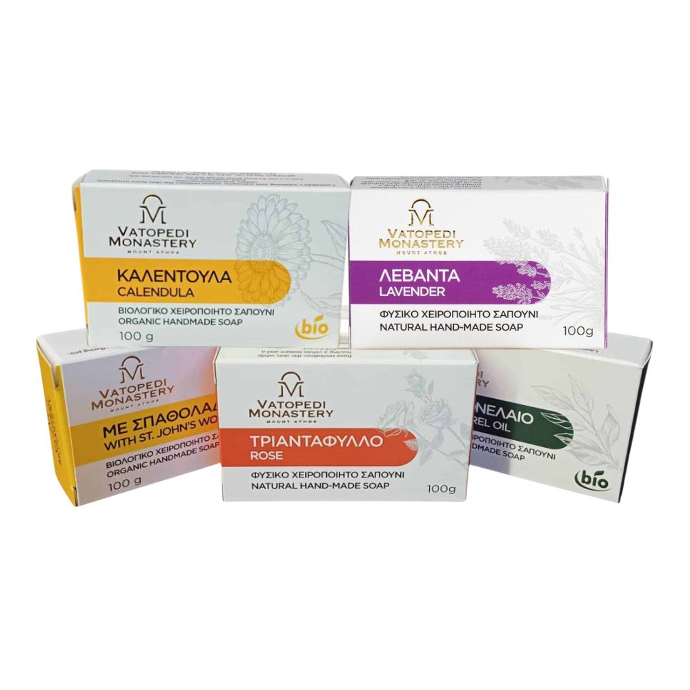 Χειροποίητο Παραδοσιακό Αρωματικό Σαπούνι, απευθείας από την Ιερά Μεγίστη Μονή Βατοπαιδίου. Καθαρίζει και αναζωογονεί την επιδερμίδα, προσφέροντας αίσθηση φρεσκάδας.