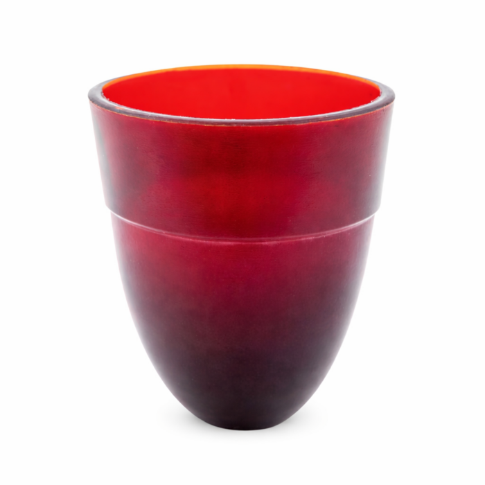 Καντηλόκουπα γυάλινη κομψής σχεδίασης σε σχήμα ποτηριού μεσαίου ύψους, σε κόκκινο χρώμα.