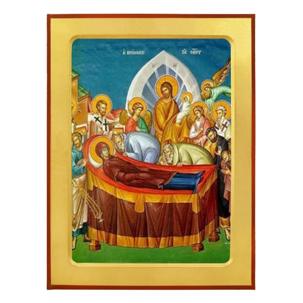 Ξύλινη εικόνα σκαφτή με πλαίσιο με την Κοίμηση της Θεοτόκου