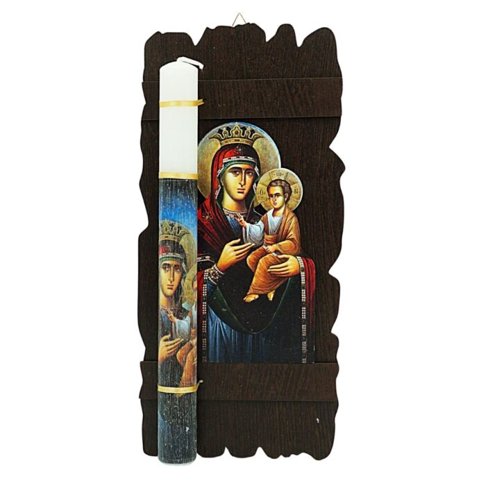 Πασχαλινή Λαμπάδα Εικόνα Παναγίας Ακανόνιστο Παλαιωμένο Ξύλο