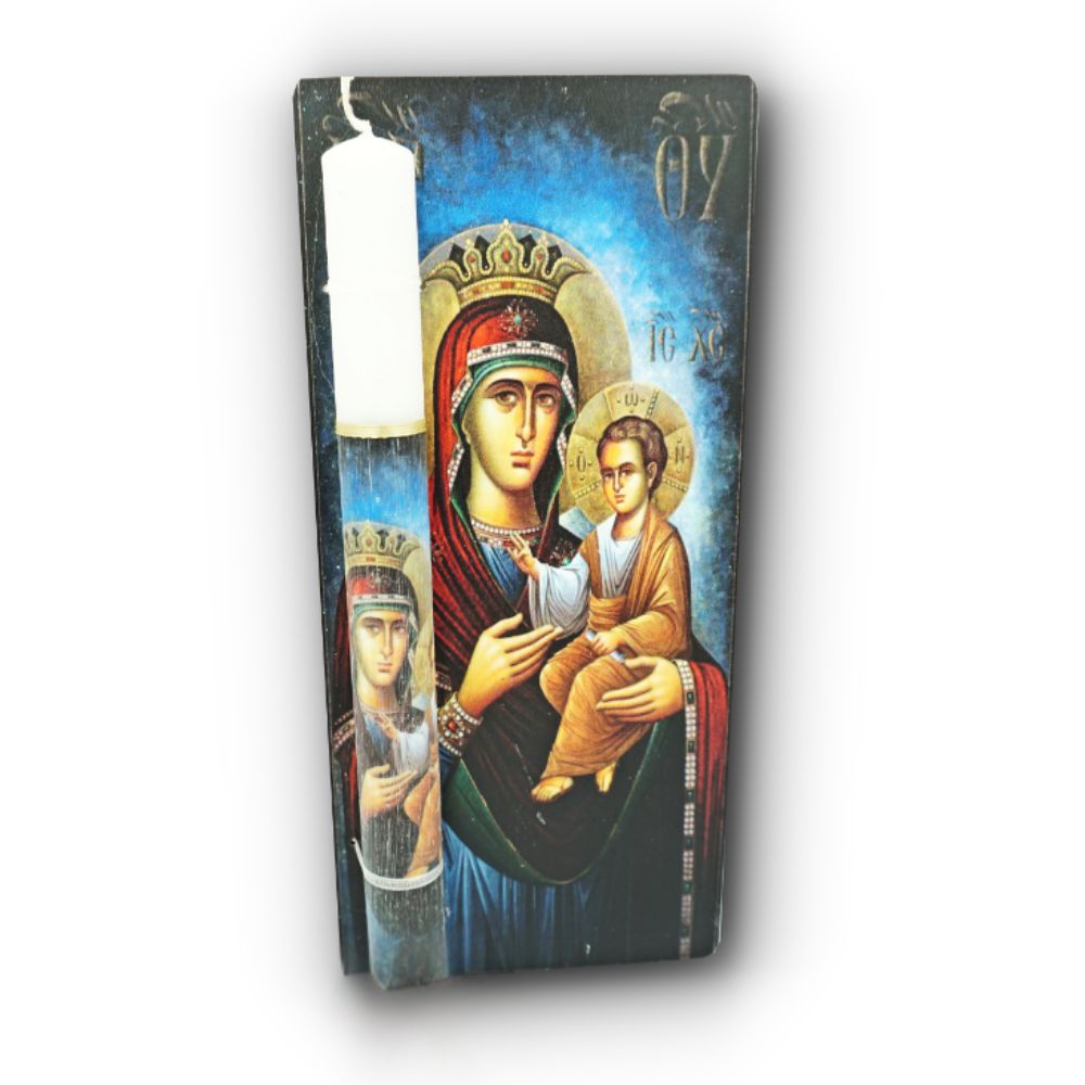 Πασχαλινή Λαμπάδα Ξύλινο Καδράκι Παναγία