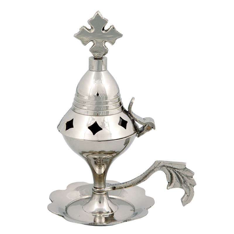 Μικρό λείο επινικελωμένο οικιακό θυμιατό με πιατάκι.