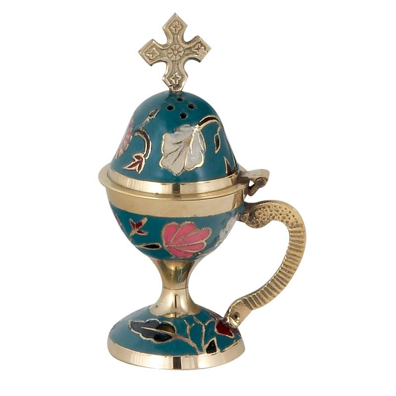 Μπρούτζινο οικιακό θυμιατό με επίστρωση σμάλτου σε μπλε χρώμα.