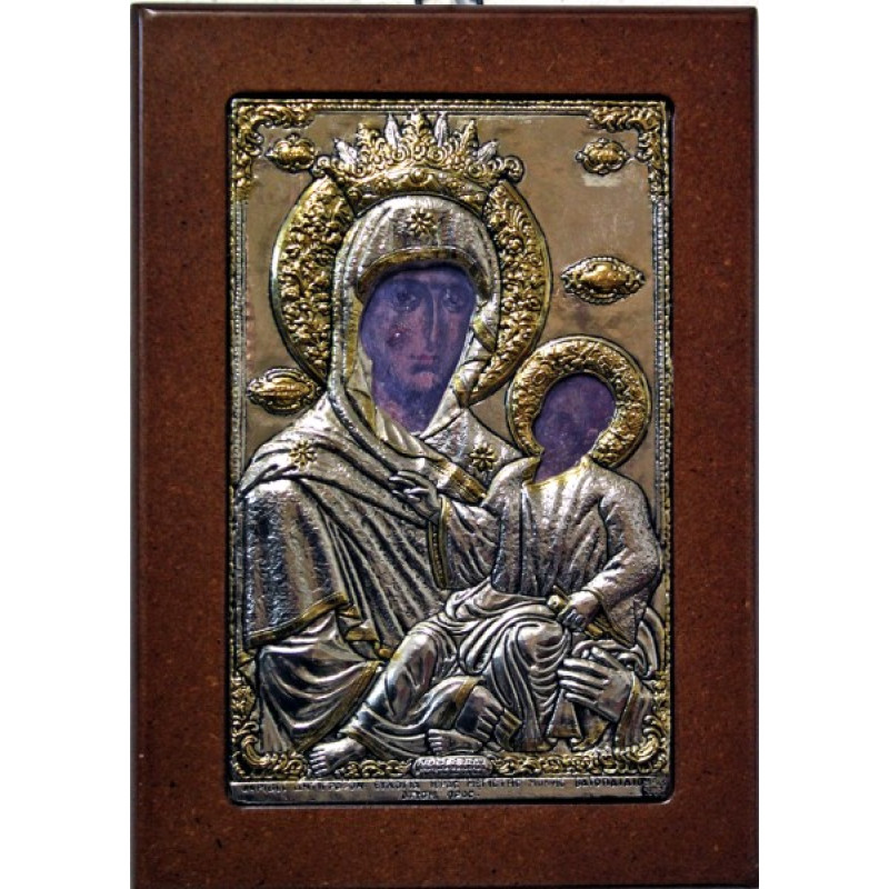 Παναγία Εσφαγμένη – Επάργυρη εικόνα κορνίζα