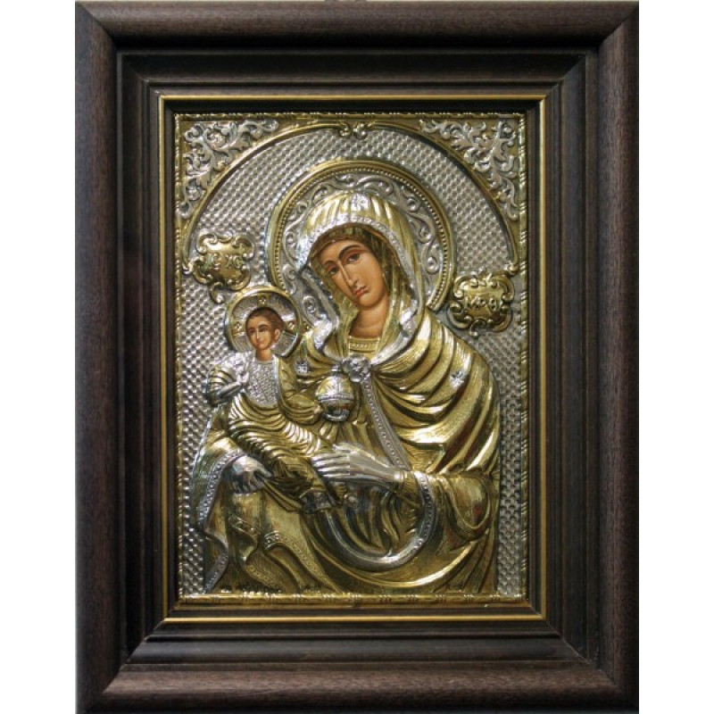Επάργυρη εικόνα με κορνίζα και τζάμι με την Παναγία την Δεξιοκρατούσα