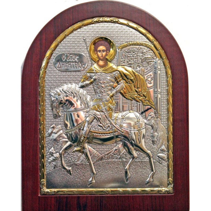 Άγιος Δημήτριος – Επάργυρη εικόνα κορνίζα