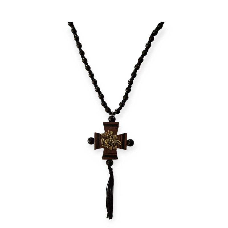 Ξύλινος σταυρός για τον λαιμό με τον Άγιο Γεώργιο με ξύλινες χάνδρες πολυτελείας