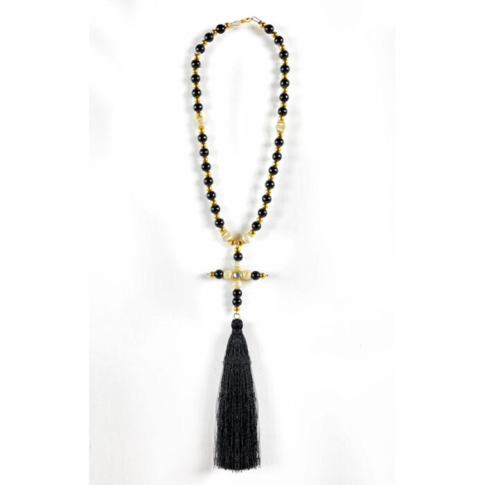 Κρεμαστός Σταυρός αυτοκινήτου με χάντρες, σταυρουδάκι στο κέντρο και μαύρη πλέξη.