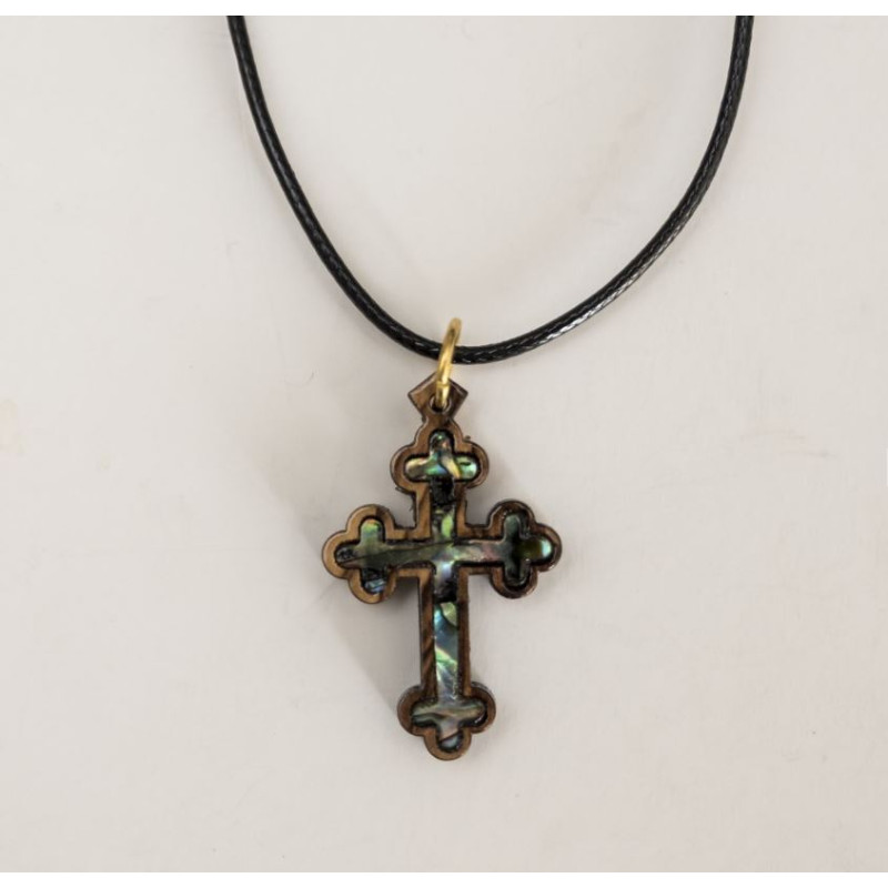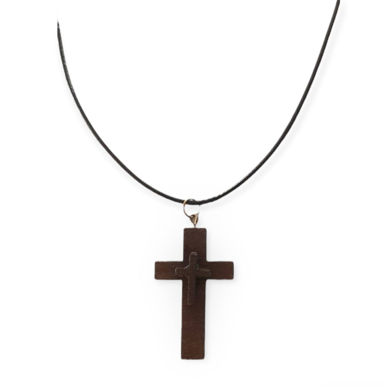 Ξύλινος σταυρός λαιμού. Το κορδόνι προσαρμόζεται για κάθε μέγεθος.