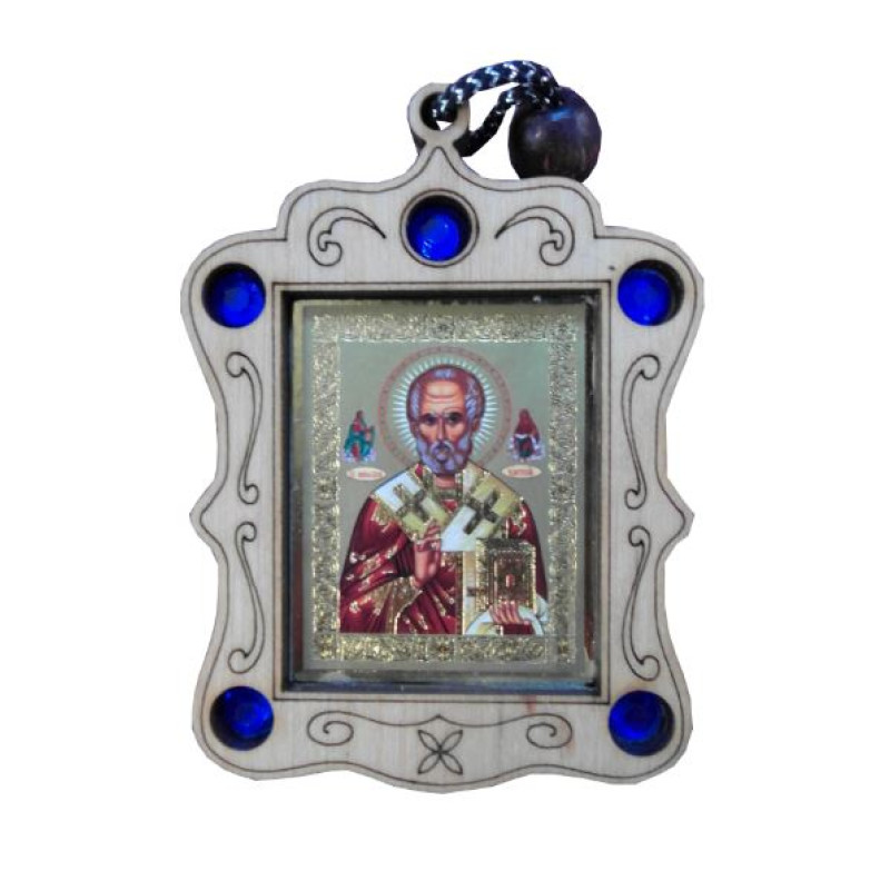Ξύλινο κρεμαστό για το αυτοκίνητο, με μέταλλο αμετάβλητο εσωτερικά, με τον Άγιο Νικόλαο
