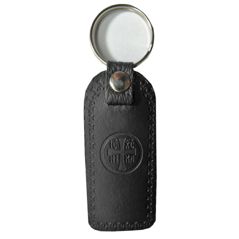 Δερμάτινο μπρελόκ με την Παναγία της Τήνου σε μαύρο χρώμα.