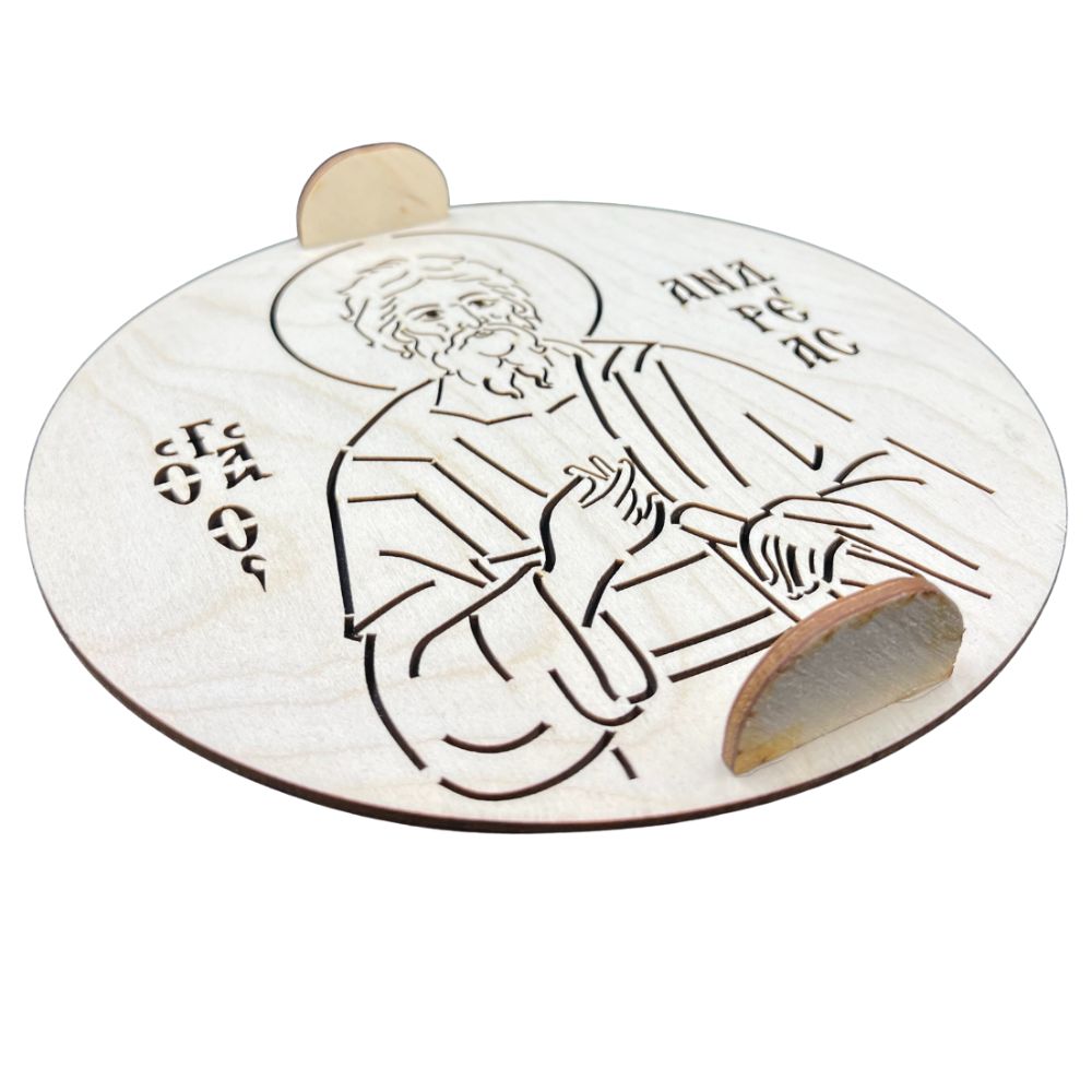 Σφραγίδα ξύλινη για Κόλλυβα στρογγυλή, διαθέτει σχέδιο με απεικόνιση τον Άγιο Ανδρέα