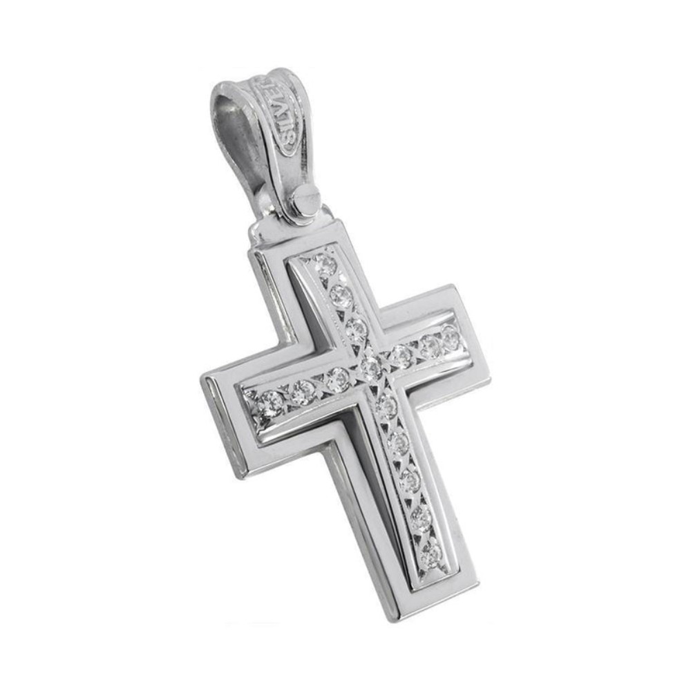 Σταυρός λαιμού από ασήμι 925, επιπλατινωμένος με ζιργκόν