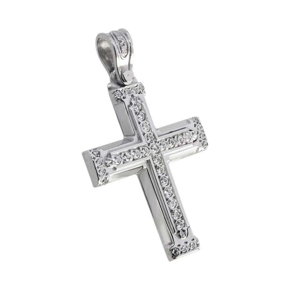 Σταυρός λαιμού από ασήμι 925, επιπλατινωμένος με ζιργκόν