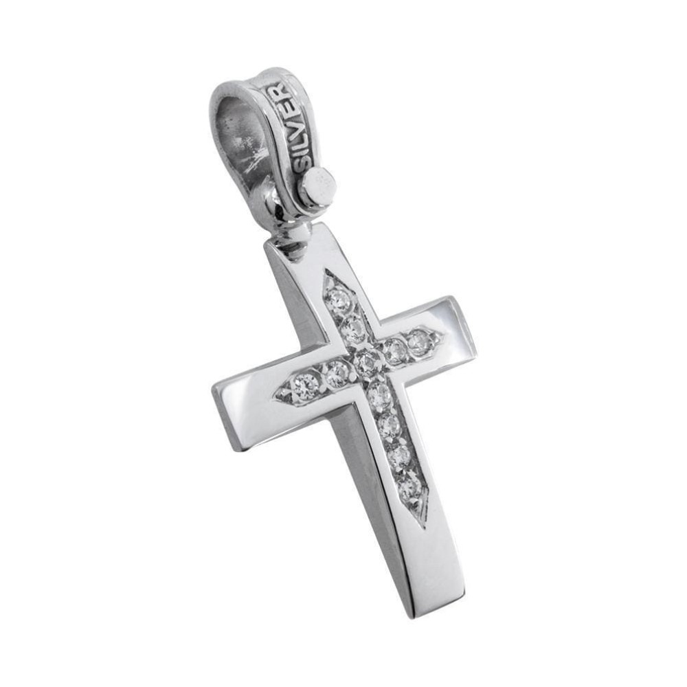 Σταυρός λαιμού από ασήμι 925, επιπλατινωμένος με ζιργκόν