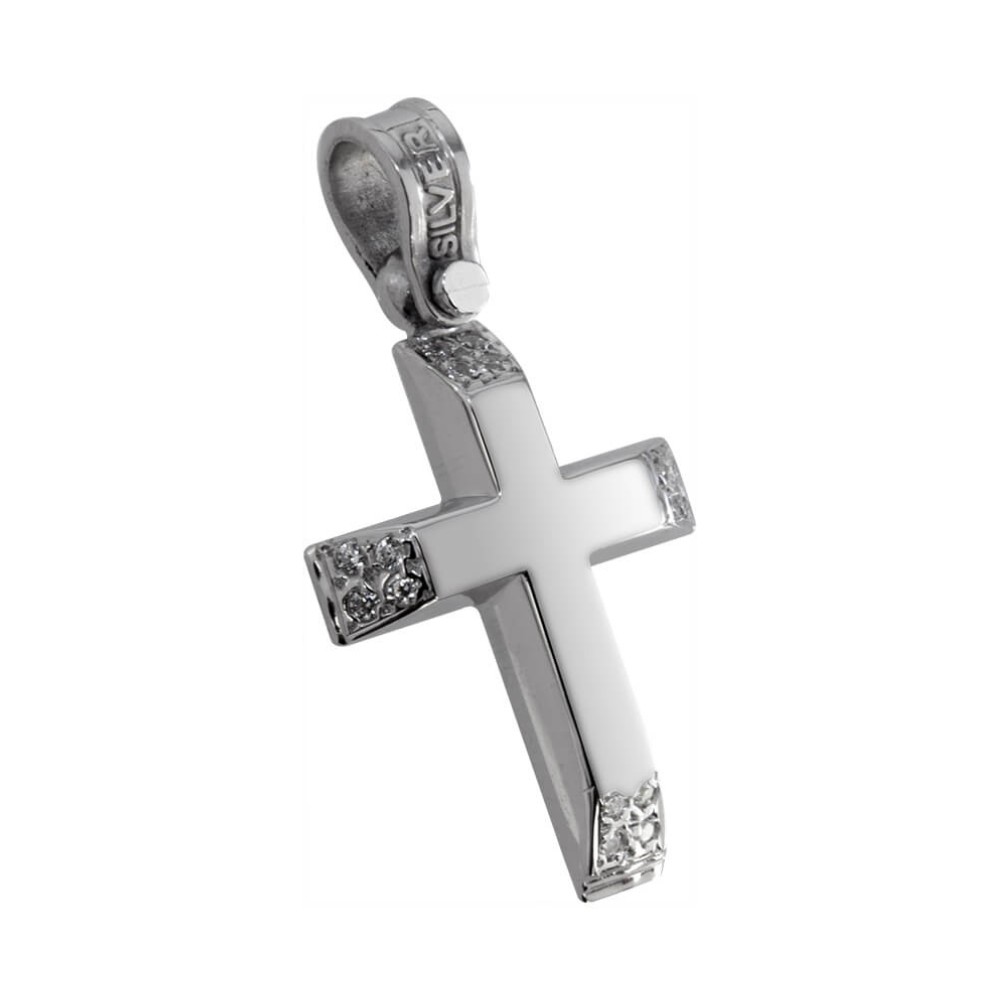 Σταυρός λαιμού από ασήμι 925, επιπλατινωμένος με ζιργκόν