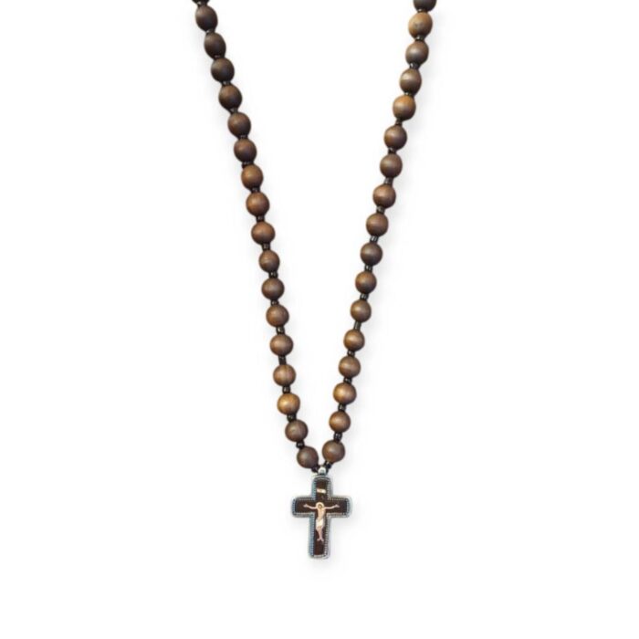 Σταυρός λαιμού με ξύλινες χάντρες και μεταλλικό σταυρό