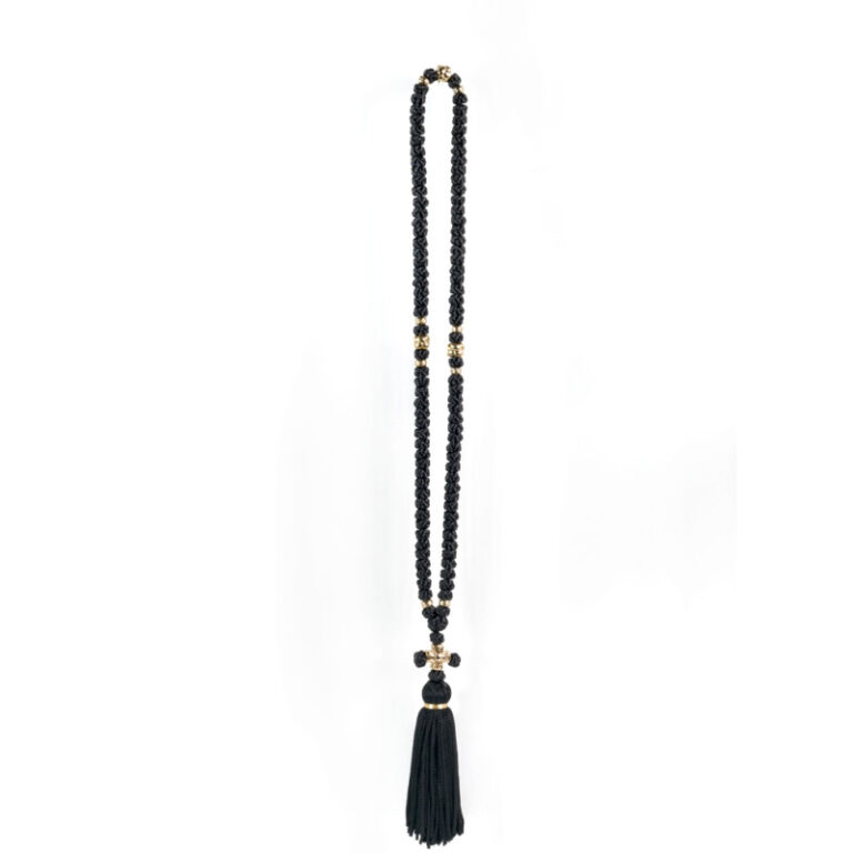Δεσποτικό κομποσχοίνι προσευχής, φλος με 100 χοντρούς κόμπους, φούντα με πλέξη και μεταλλικά σταυρουδάκια
