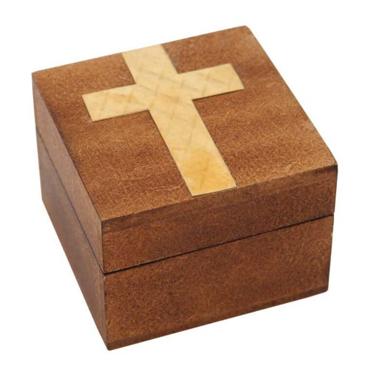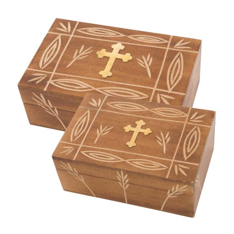 Κουτί Αποθήκευσης Ξύλινο Σκαλιστό με Μπρούτζινο Σταυρό