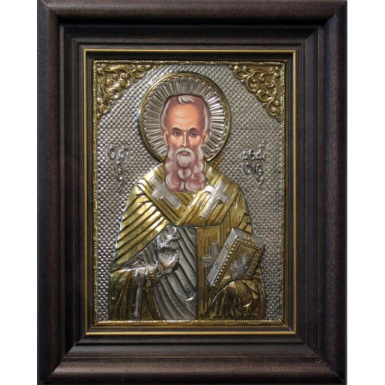 Άγιος Αθανάσιος – Επάργυρη εικόνα με κορνίζα και τζάμι