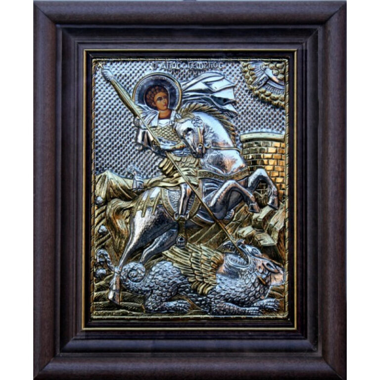 Άγιος Γεώργιος – Επάργυρη εικόνα με κορνίζα και τζάμι