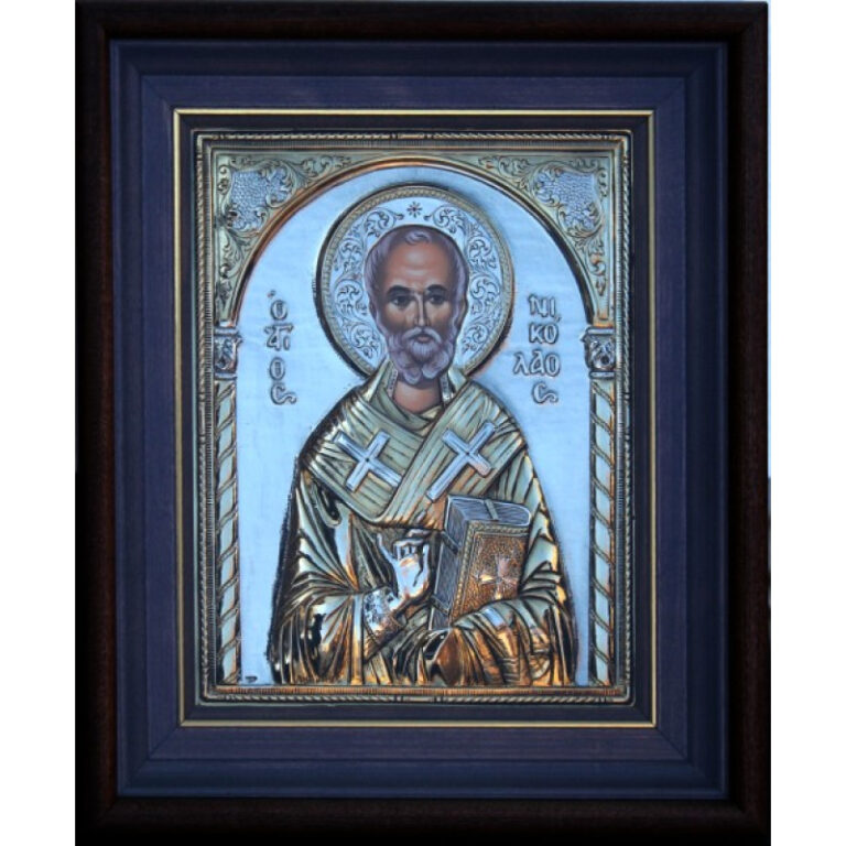Άγιος Νικόλαος – Επάργυρη εικόνα με κορνίζα και τζάμι