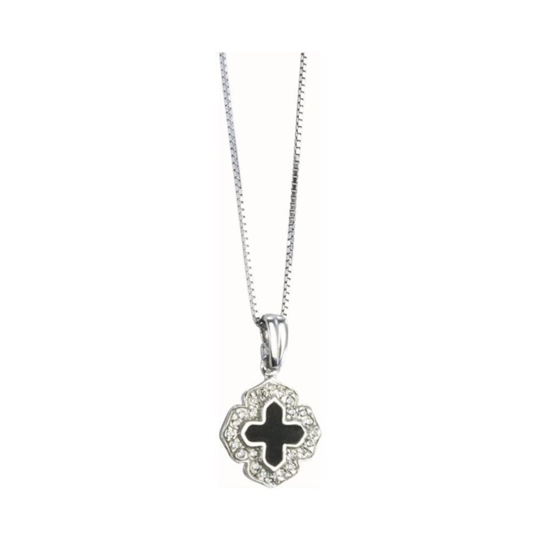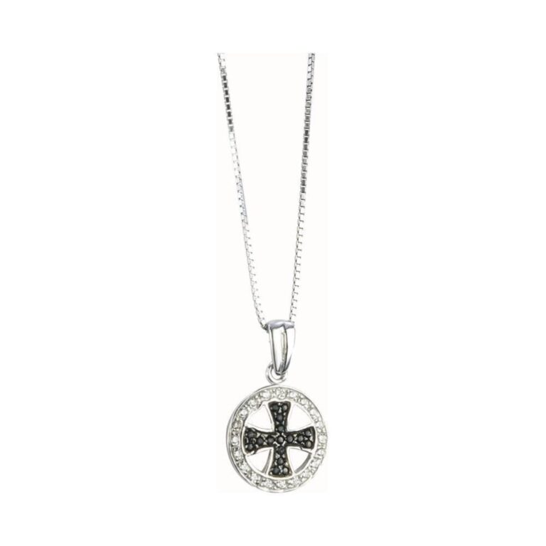 Ασημένιος Σταυρός 925 Επιχρυσωμένος με Μαύρο Σμάλτο & Λευκό Ζιργκόν