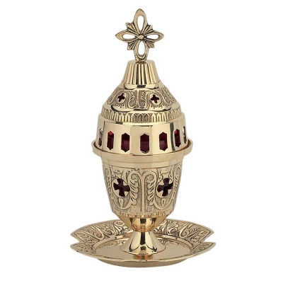 Επιτραπέζιο μπρούτζινο σκαλιστό οικιακό καντήλι με πιατάκι